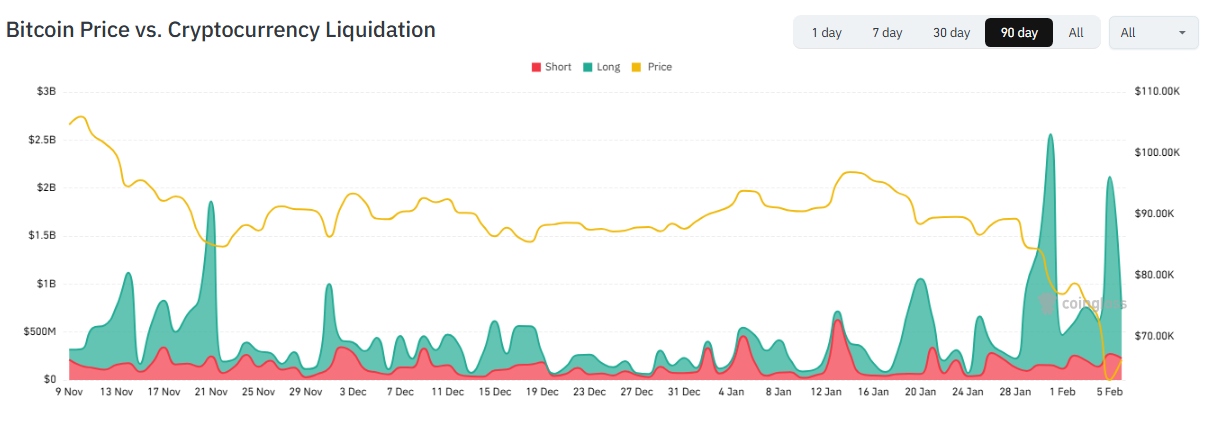 Der Crash löste eine Kaskade von Zwangsliquidationen aus. Mehr als 2.58 Milliarden Dollar an gehebelten Krypto-Positionen gingen dabei verloren. Rund 82 Prozent dieser Liquidationen stammten von Long-Tradern, die auf steigende Kurse gewettet hatten. Insgesamt traf es über 530'000 Händler.