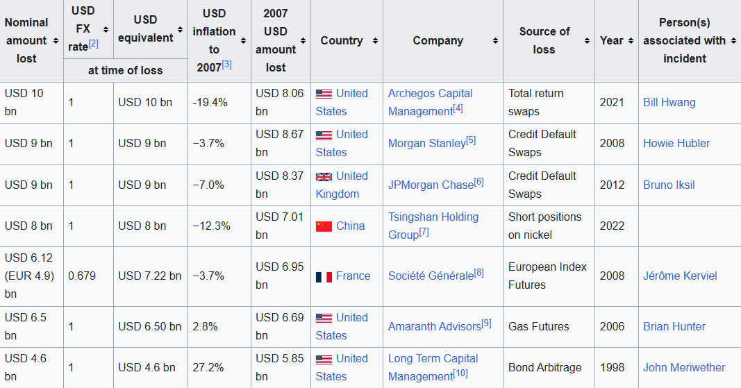 Die Zahlen ordnen Bitmines Position unter die grössten Handelsverluste der Geschichte ein. Bei einer hypothetischen Liquidation lägen die realisierten Verluste auf dem Niveau von Jerome Kerviels Derivatehandel bei der Societe Generale 2008 mit 6.7 Milliarden USD. Auch das "London Whale"-Debakel bei JP Morgan 2012 mit 6 Milliarden USD bewegt sich in dieser Grössenordnung. Der Zusammenbruch von Archegos Capital Management 2021 mit 10 Milliarden USD Verlust führt die Rangliste bisher an.