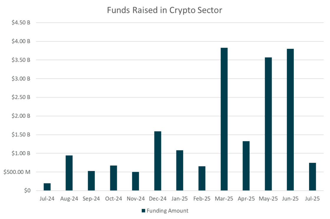 Die Risikokapitalinvestitionen in digitale Vermögenswerte stiegen im zweiten Quartal 2025 auf 10.03 Milliarden USD - ein Anstieg von 100 Prozent im Jahresvergleich. Allein der Juni trug mit 5.14 Milliarden USD bei und markierte damit den höchsten monatlichen Wert seit Januar 2022.