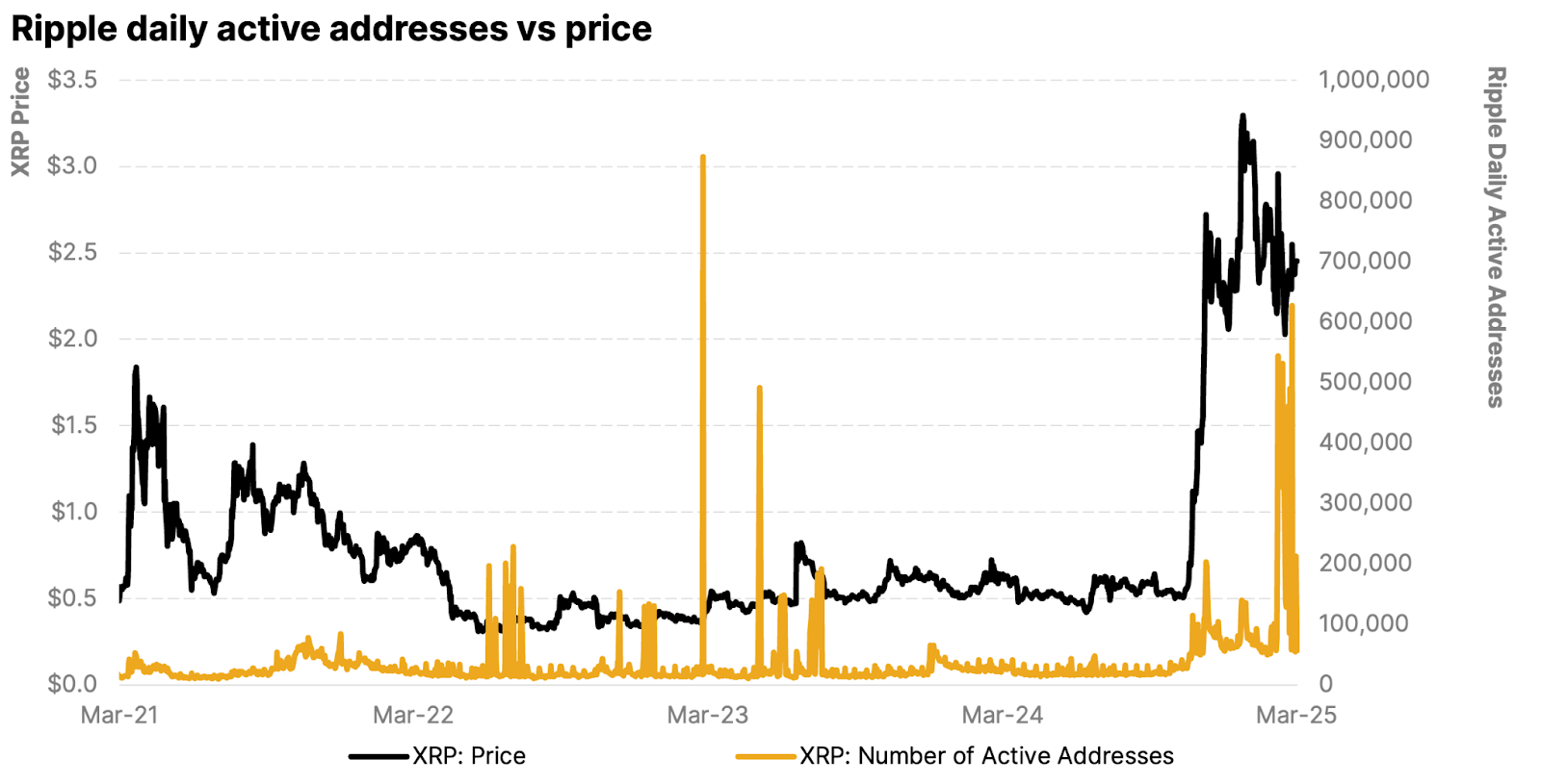 Der Anstieg der Aktivität könnte auch auf die Reduzierung der Kontoreserve von 10 auf 1 XRP im Dezember 2024 zurückzuführen sein, wodurch die Onboarding-Kosten gesenkt wurden. Darüber hinaus könnten die Partnerschaften von Ripple mit Archax, Meld Gold und Zoniqx, um tokenisierte Vermögenswerte wie Gold und Treasuries auf XRPL zu ermöglichen, die Abwicklungsaktivität ankurbeln.