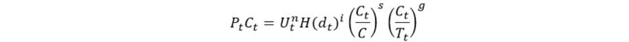 Der vierte Ausdruck beschreibt schliesslich den Typ der Währung. Das Verhältnis C(t)/T(t) misst das Verhältnis der Transaktion T(t) zum aktuellen Angebot C(t), und g ist der Parameter des Gresham'schen Gesetzes. Dieses Verhältnis erfasst, ob die Kryptowährung eher ein Tauschmittel oder ein Wertaufbewahrungsmittel ist; es ist eine Möglichkeit, die ewige Debatte darüber zu beenden, ob Bitcoin ein Wertaufbewahrungsmittel oder ein Tauschmittel ist. Je niedriger das Verhältnis, desto mehr Transaktionen werden im Verhältnis zur Geldmenge beobachtet, was darauf hindeutet, dass die Kryptowährung einen hohen Umsatz hat und daher von den Benutzern in erster Linie als Tauschmittel betrachtet wird. Ein höheres Verhältnis deutet auf einen geringen Umsatz und einen hohen Grad der Aufbewahrung hin.