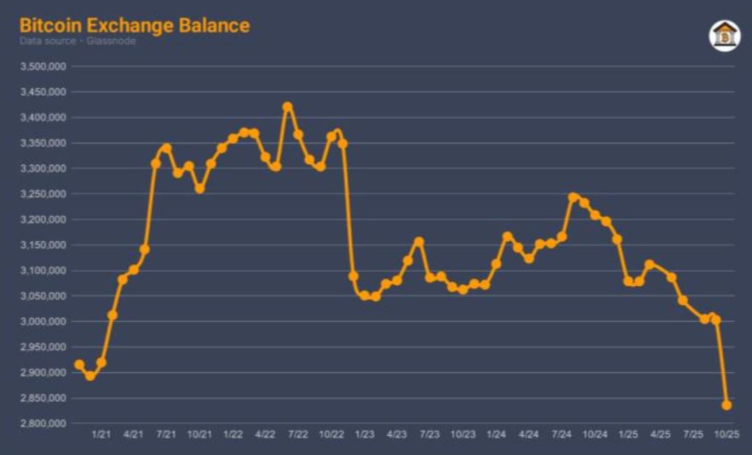 Neue Daten deuten zudem auf eine sich zuspitzende Angebotsverknappung bei Bitcoin hin. Institutionelle OTC-Desks berichten über leere Bestände: Innerhalb von sechs Wochen sind die gehaltenen Reserven von rund 137’000 BTC auf knapp 30’000 BTC gefallen – das niedrigste Niveau seit 2021. Gleichzeitig befinden sich nur noch etwa 2 Millionen BTC auf Börsen, ein 7-Jahres-Tief.