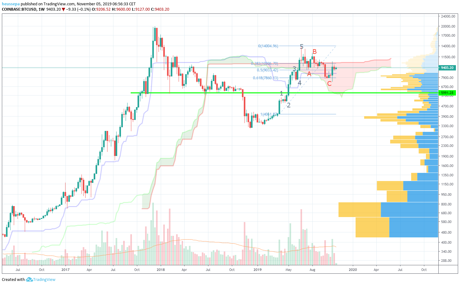 Wenn ich mich nicht irre, sind wir gerade dabei, die zweite Welle zu starten. Ich werde diese Vermutung jedoch erst als bestätigt erachten, wenn über 10,5k hinaus sind, was mich ziemlich bullisch stimmen würde, da wir dann in die dritte Welle eintreten würden, welche die impulsivste (Elliot Wave Theory) ist. Zudem würden wir uns endlich aus der rückläufigen Ichimoku Cloud auf der Wochen- und Tages-Chart befreien.