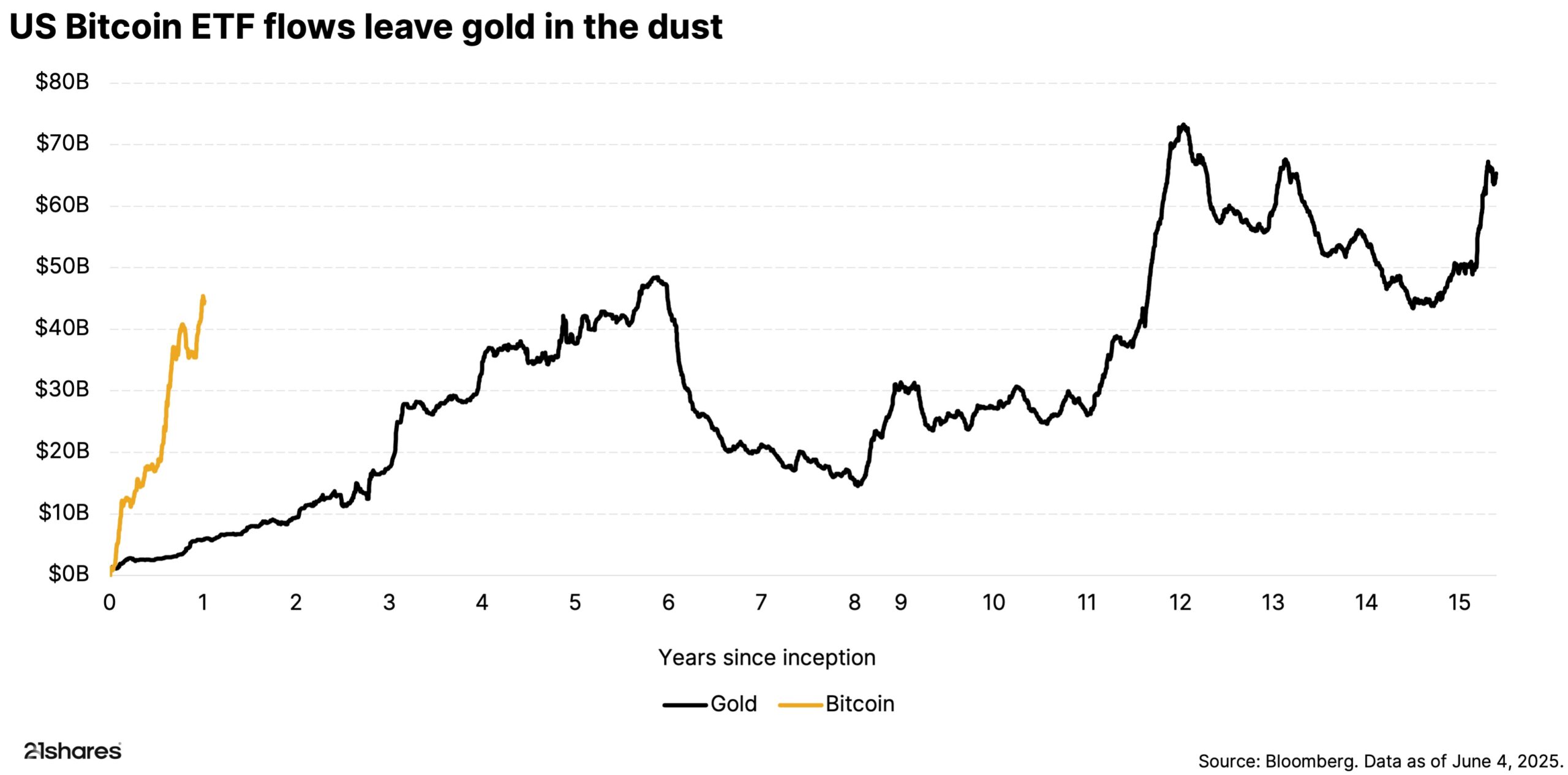 Bitcoin-ETFs sind erfolgreicher als Gold-ETFs